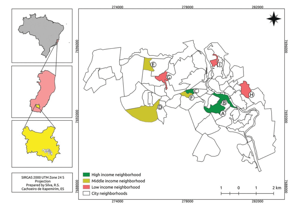 Os pesquisadores aplicaram a regra em 9 bairros de Cachoeiro de Itapemirim, divididos em três grupos de renda. A hipótese inicial era que a alta renda se beneficiaria de maior quantidade e qualidade de vegetação urbana.